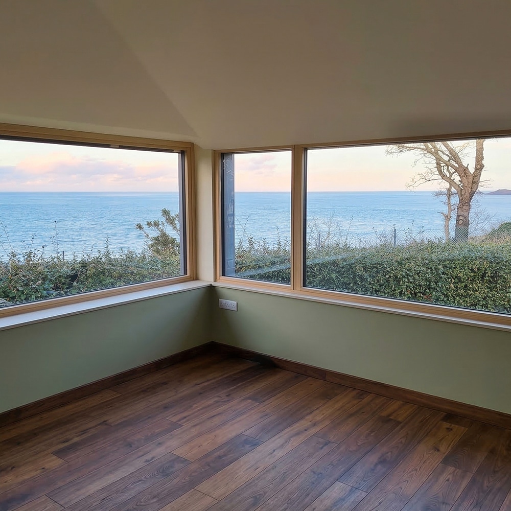 - Grandes ouvertures : menuiseries mixtes bois-alu triple vitrage pour un panorama d’exception.